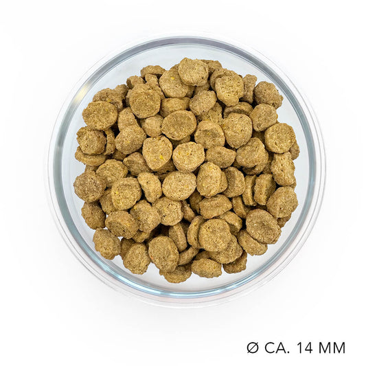 Onze Held vom Feld droogvoer is gebaseerd op een uitgebalanceerde, purinearme receptuur. Het vegetarische en purinearme voer bevat zorgvuldig geselecteerde ingrediënten zoals aardappelen, ei en lupine, die van nature weinig purine bevatten. Met een purinegehalte van slechts 27 mg per 100 g is het een goede keuze voor honden die een purinearme voeding nodig hebben. Bovendien heeft onze Held vom Feld een onweerstaanbare smaak. Dit betekent dat je je hond een purinearm dieet kunt geven zonder dat je hoeft in te leveren op een heerlijke smaakervaring.